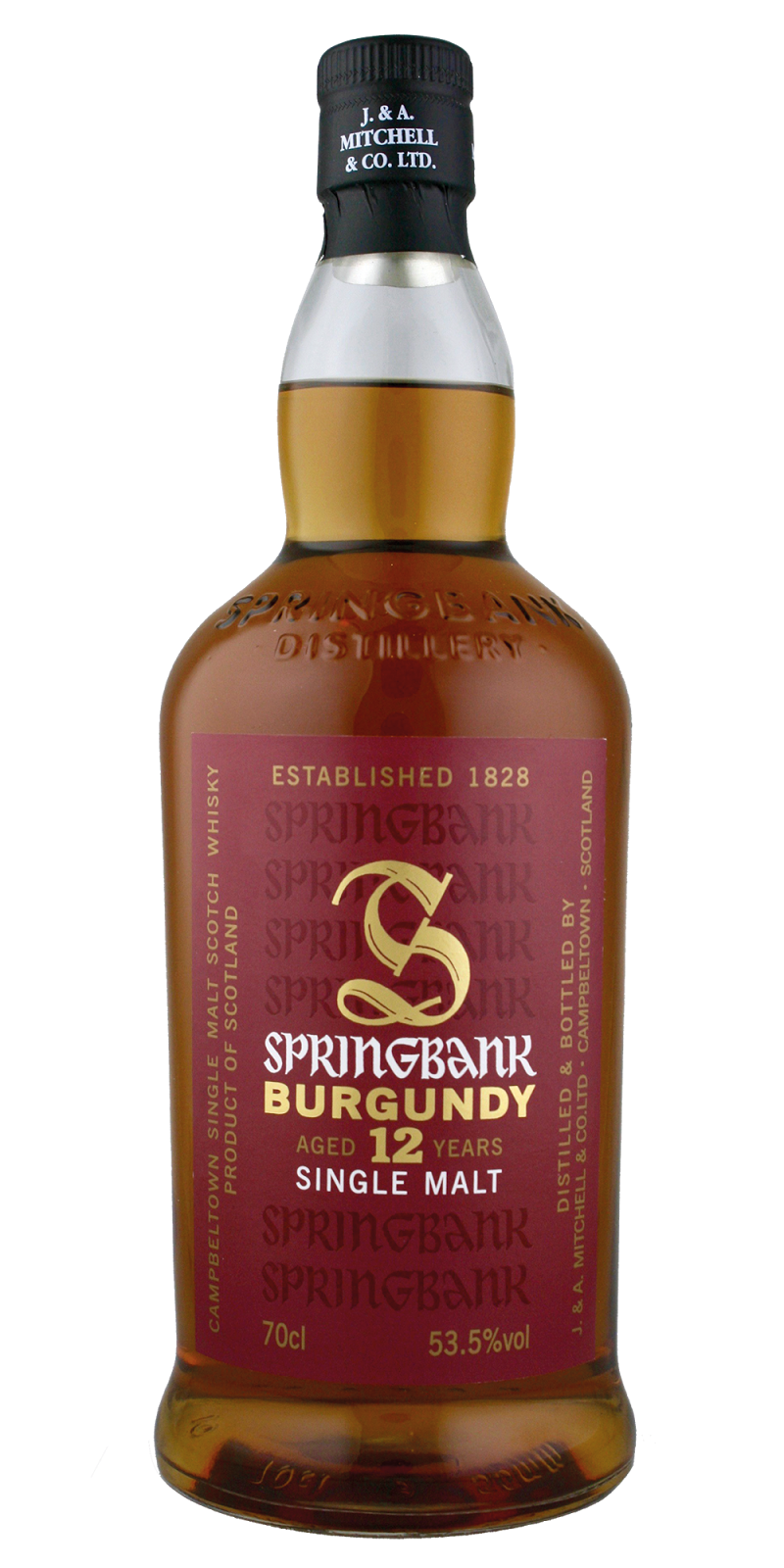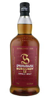 Springbank 12 yo Burgundy, 53,5 % ABV. Ett antal av 654 flaskor släpptes till försäljning i Sverige den 23 mars till priset 931 kronor flaskan.