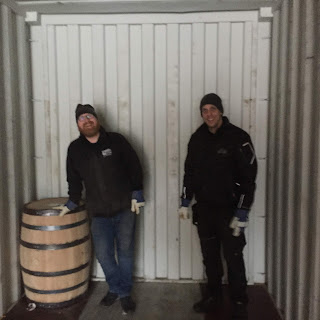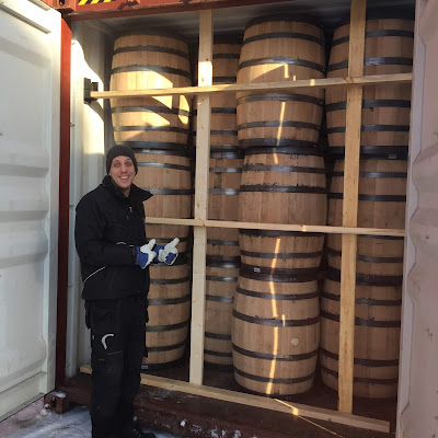 All of the sudden Oskars phone rang, a container with casks was just arriving!