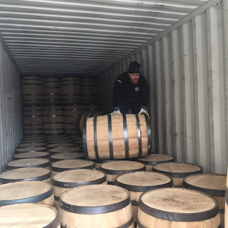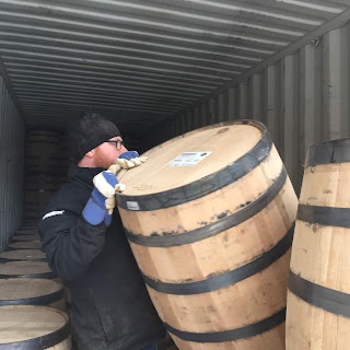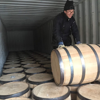 The container was absolutely stuffed with over 200 casks. Casks made from new american oak with wave staves (räfflad insida). Wave staves gives the liquid more contact with the wood, and hence makes maturation go faster.