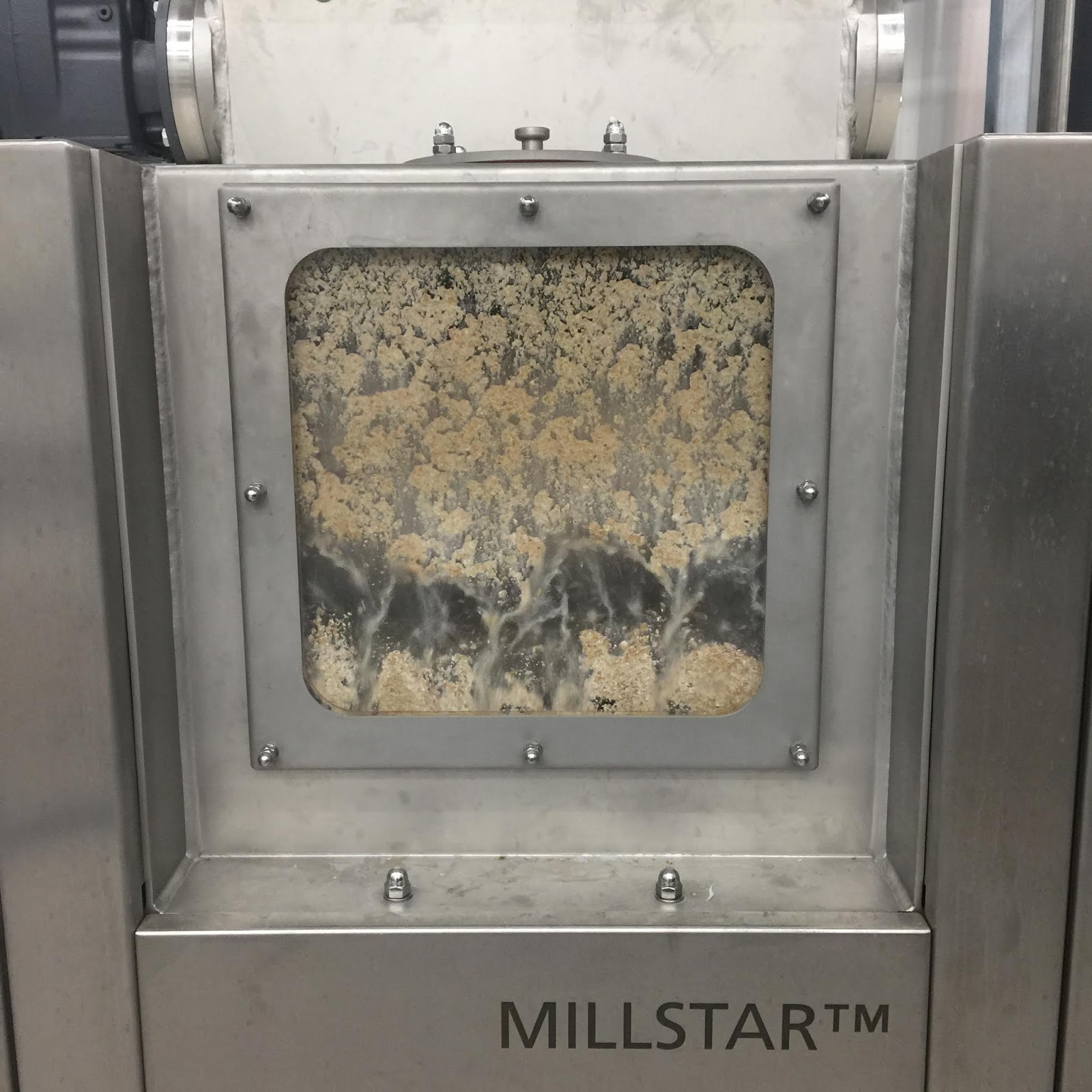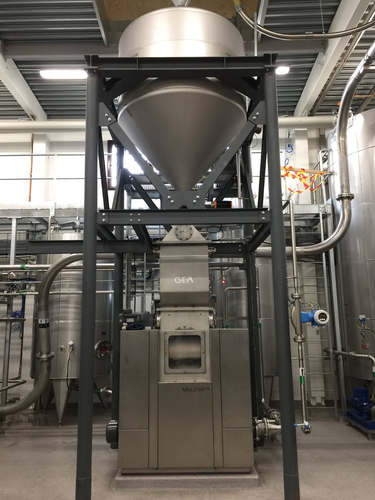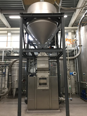 The mill used at Agitator is actually a so called wet-mill where warm brewing-water is added both before the milling and the crushing of the barley starts, and during the milling. Thanks to the adding of water, the husk basically slides of the barley in the milling process. The adding of water gives more fresh flavours (the water also makes sure there is no risk at all of any dust-explosion, a great benefit with watermilling). When the milling is done, the mash (grist and water) is pumped directly into the mash tun.