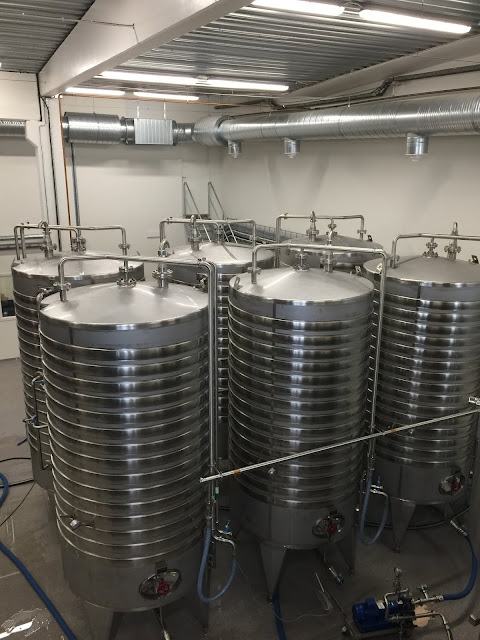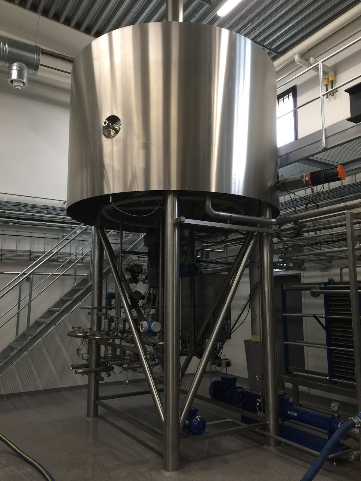 The cooled wort (cooled from 60° celcius to 20° celcius) is then pumped into one of these six fermentation vessels where water and yeast is added. The fermentation, where the yeast turns the sugar into alcohol, goes on for 168 hours/seven days (!) which results in a mash at around 10% (!) ABV.