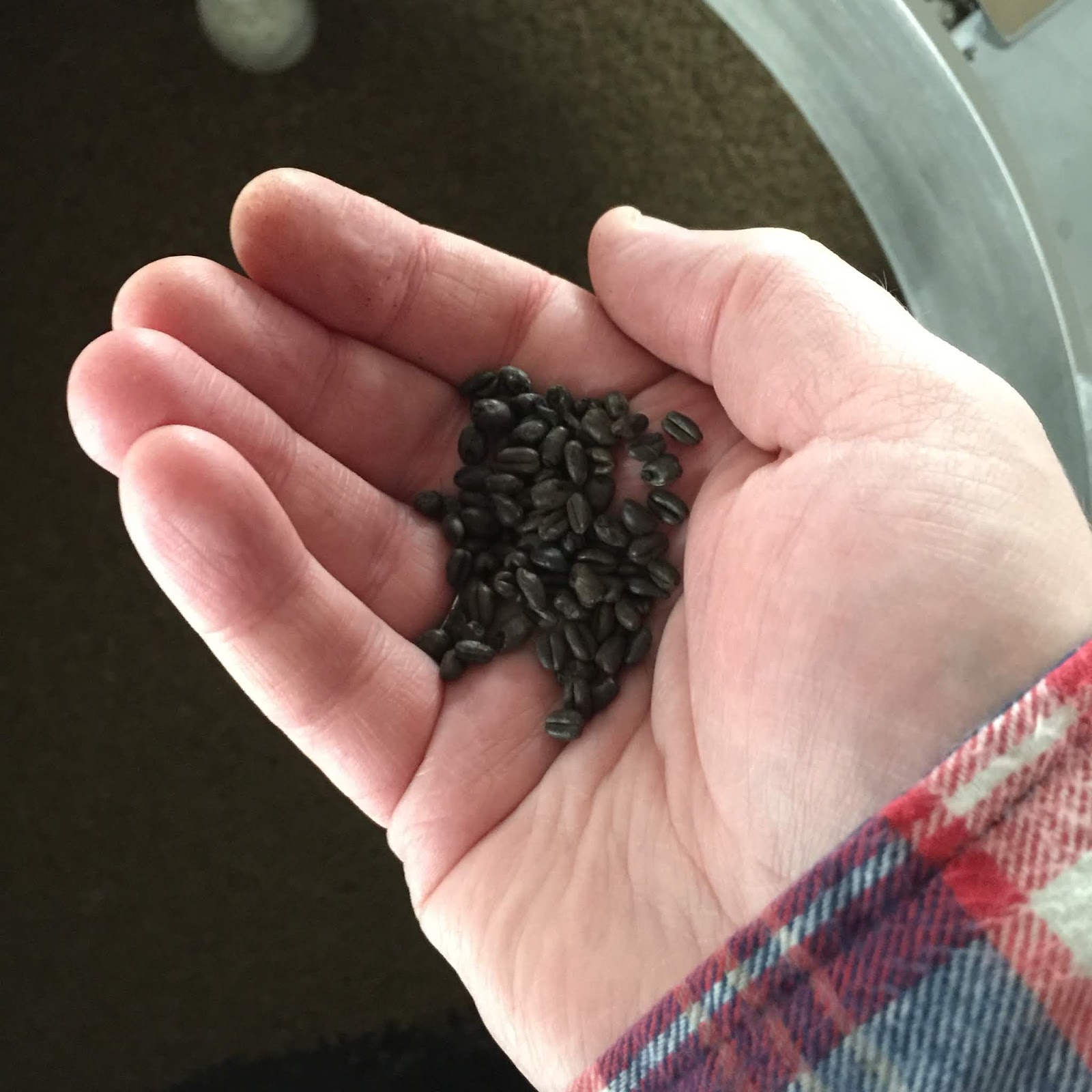 This is a view into the mini-silo. On the day I visited it was loaded with a mix of 85 percent barley and 15 percent (200 kilograms of) black roasted wheat.