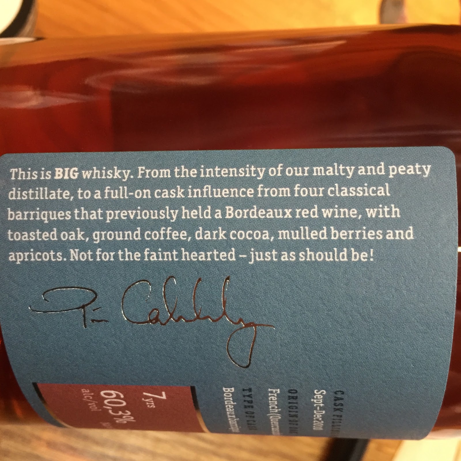 Smögen Distillery to talk to Pär Caldenby (Master Distiller and Distillery Manager) to see if he had anything that he wanted me to review. Most willingly he shared a sample of their coming release called "Barrique!". Here in Sweden it will be released as a web launch this thursday (the 1st of March) and you can view it by clicking