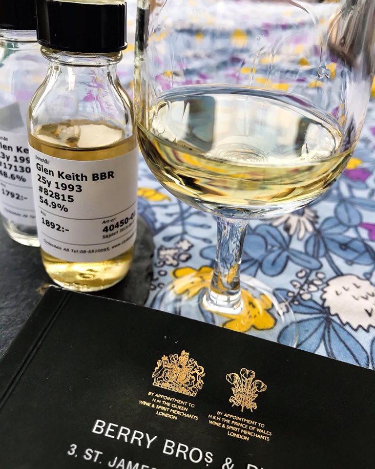 Den familjeägda oberoende buteljeraren Berry Bros & Rudd grundades redan 1698 och är därmed en av världens äldsta vin och sprithandlare som existerar idag. Företaget har sedan start huserat i London på den anrika adressen 3 St James Street där dem relativt nyligen också öppnat en ny och större butik. Trots att jag själv aldrig har varit på plats vet jag att BBR som varumärke är förknippat med hög standard vad gäller både viner och starksprit samt att man använder sig av den legendariska Doug McIvor när det kommer till att plocka ut whisky från det gedigna sortimentet av whiskyfat. Såsom nu då vår svenska spritimportör Clydesdale fått hjälp med att välja ut en whiskyduo från speysidedestilleriet Glen Keith, ett destilleri Chivas Brothers lät bygga upp så sent som 1957. Sin ungdom till trots har Glen Keith en rätt brokig om än mycket intressant historia där dem experimenterat med såväl trippeldestillering och kolumnpannor som olika typer av vatten och jästsorter. Dem två whisky jag haft äran att prova är en 23 årig whisky destillerad 1995 samt en 25 årig whisky destillerad 1993. Båda lanseras exklusivt för den svenska marknaden i upplagor om 120 stycken vardera och går att finna på Systembolagets beställningssortiment den 7 juni kl. 10:00. Priset för den yngre utgåvan kommer landa på 1792 kronor medan den något äldre kommer kosta 1892 kronor.