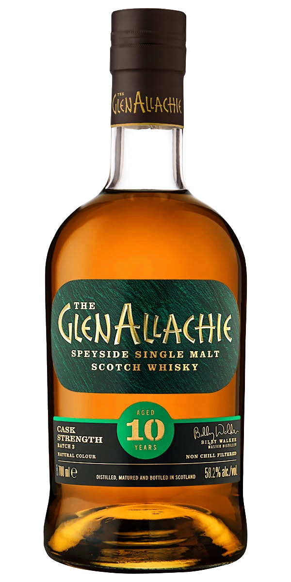 GlenAllachie 10yo Cask Strength Speyside Single Malt har delat sin tid mellan Oloroso och Pedro Ximénez Sherryfat, har den tuffa styrkan av 58,2% och kostar 878 riksdaler.