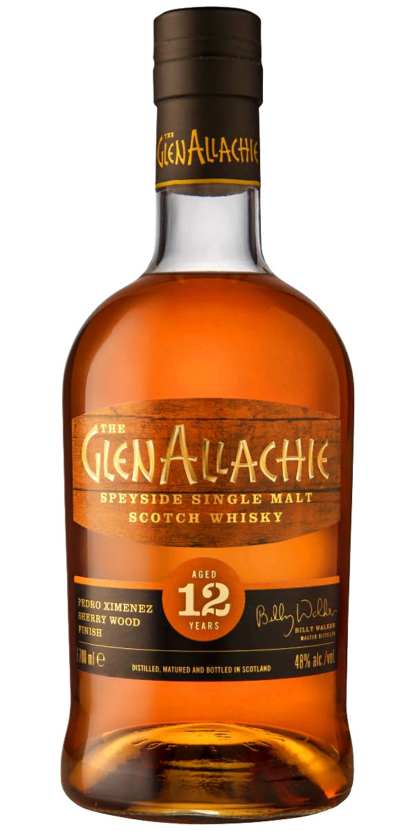GlenAllachie 12yo Pedro Ximénez Sherry Wood Finish Speyside Single Malt. Den här 12-åringen har först legat på ex Bourbonfat för att sedan få en slutlagring på ex Pedro Ximénez Sherryfat. Den har en muskelstyrka på 48% och kostar nu 879:-.