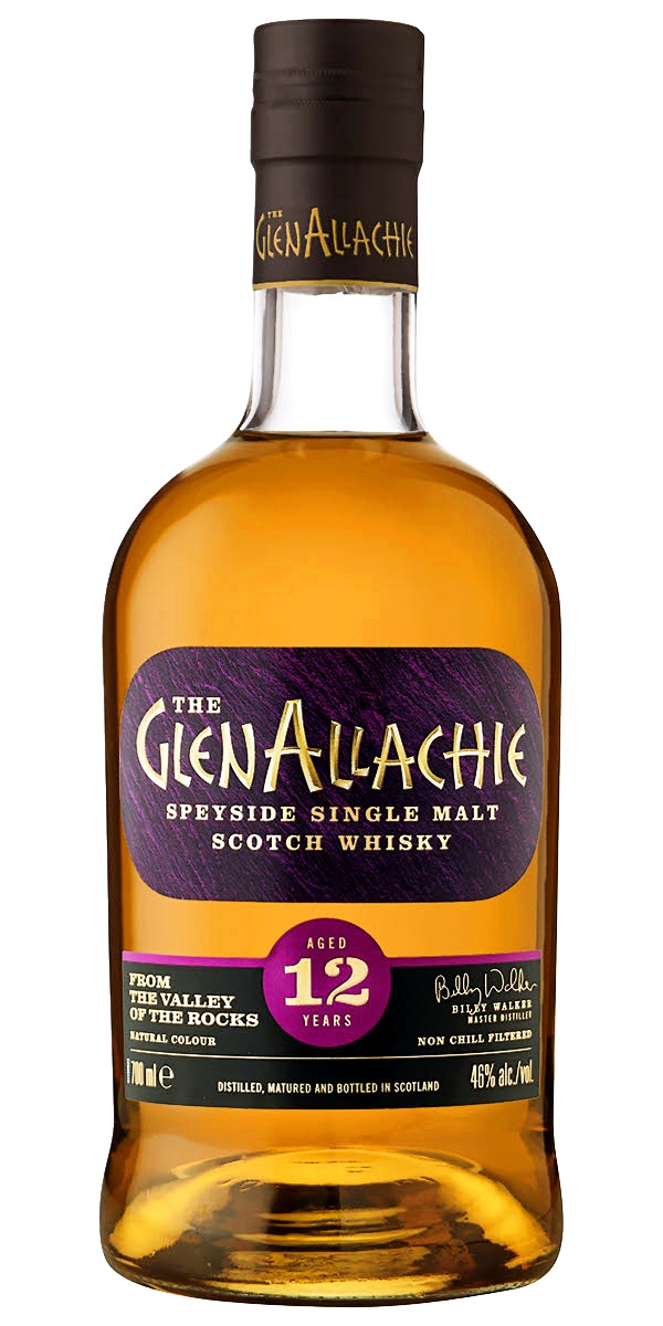 GlenAllachie 12yo From The Valley of The Rocks Speyside Single Malt har liksom 10-åringen lagrats på Oloroso och Pedro Ximénez Sherryfat och har en styrka på 46% och ett pris på 665 kronor och om någon undrar över namnet på denna whisky så betyder GlenAllachie på Gaelliska just "Den Klippiga Dalen".
