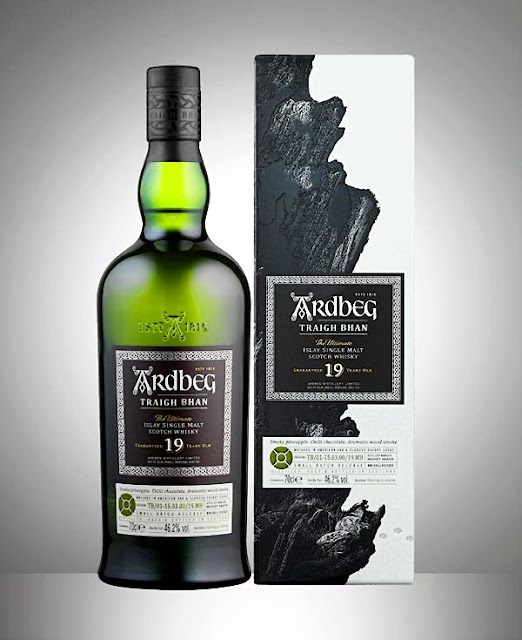 För första gången sedan destilleriet Ardbeg lanserade sin 10-åring som en årlig permanent whisky för 20 år sedan så kommer nu Ardbeg Traigh Bhan 19yo Islay Single Malt som kommer att komma ut en gång om året från och med nu. Traigh Bhan som ska uttalas "Tri-van" är en berömd strand på Hebriderna, mera känd hos ortsbefolkningen som The Singing Sands eftersom vinden och sanden tillsammans skapar ett spöklikt ljud i området är lagrad på ex Bourbon och ex Oloroso Sherryfat och den första utgåvan 2019 kommer ha en styrka på 46,2% och kosta ca 2045 svenska enkronor.