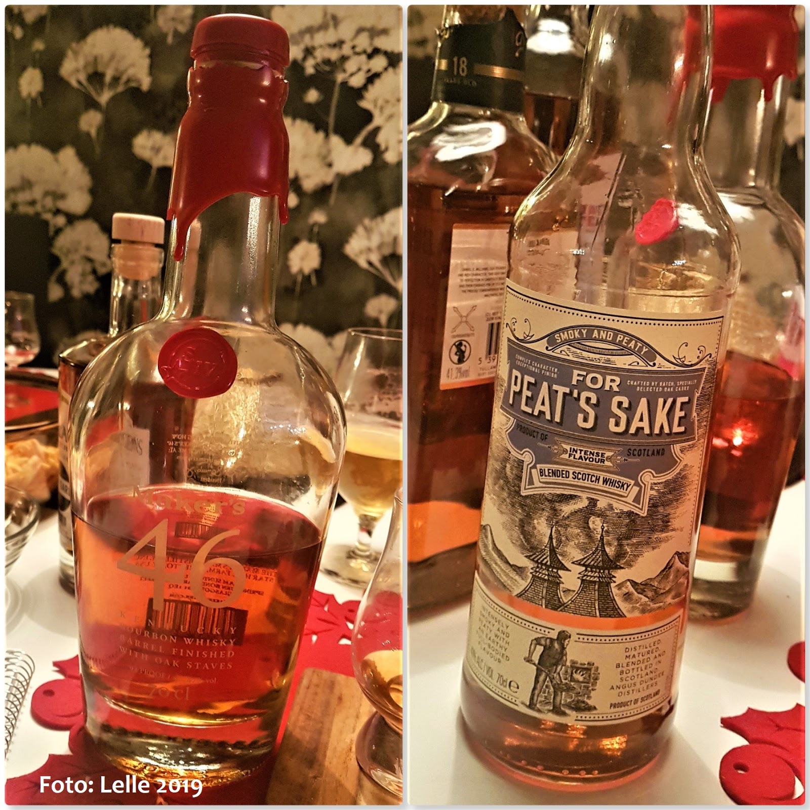 Det blev sen två redan öppnade flaskor som åtminstone jag testat ett par gånger, Maker's Mark 46 Kentucky Bourbon och For Pete's Sake Blended Scotch där Benny föll pladask för Amerikanaren och där den rökiga blandwhiskyn i alla fall passerade med godkänt i betyg.