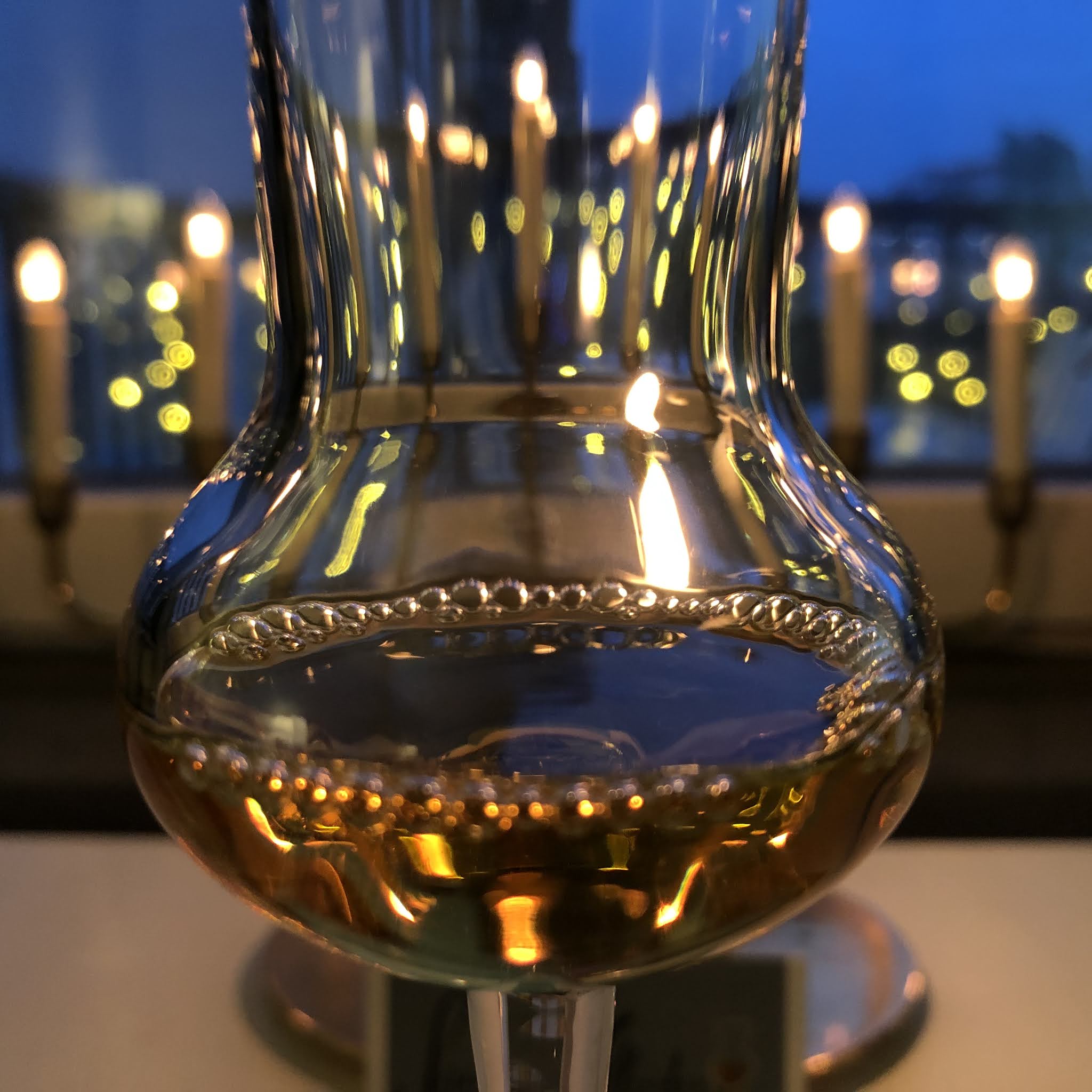 Lots of things going on at once. I find it rather hard to pinpoint which of all the scents are the strongest ones (the scents that dominate the other scents). So at first glance my overall impression is a sprawling scent. Nosing at a distance I first find basic ”white wine”, minerals, there is also a sweetness (light honey?), raisins, a whiff of yeast and/or dairy product mold (the moldy surface of brie), and burnt vanilla. Nosing with my nose in the glass this whisky is quite powerful on the alcohol. I find obvious tannins (thankfully not over the top), spruce resin, and something fruity that gives me a vibe of a yellow fruityness, sort of like a mix of honeydew melon and mango with a sparkling citric touch (fizz) to it.