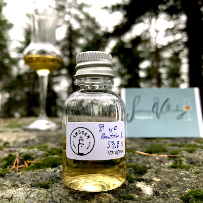 the first batch was composed from four Sauternes barriques, batch 2 is composed from seven bourbon barrels (six 1-st fill, one refill) and a 1-st fill oloroso sherry hogshead. As we know by now the phenol-content in the heavily peated malt of Smögen is well above 50ppm. This batch is bottled at 59,8% ABV, which I assume to be natural cask strength. Here in Sweden this whisky will be released at the state monopoly this tuesday (201215) and it can be viewed by clicking
