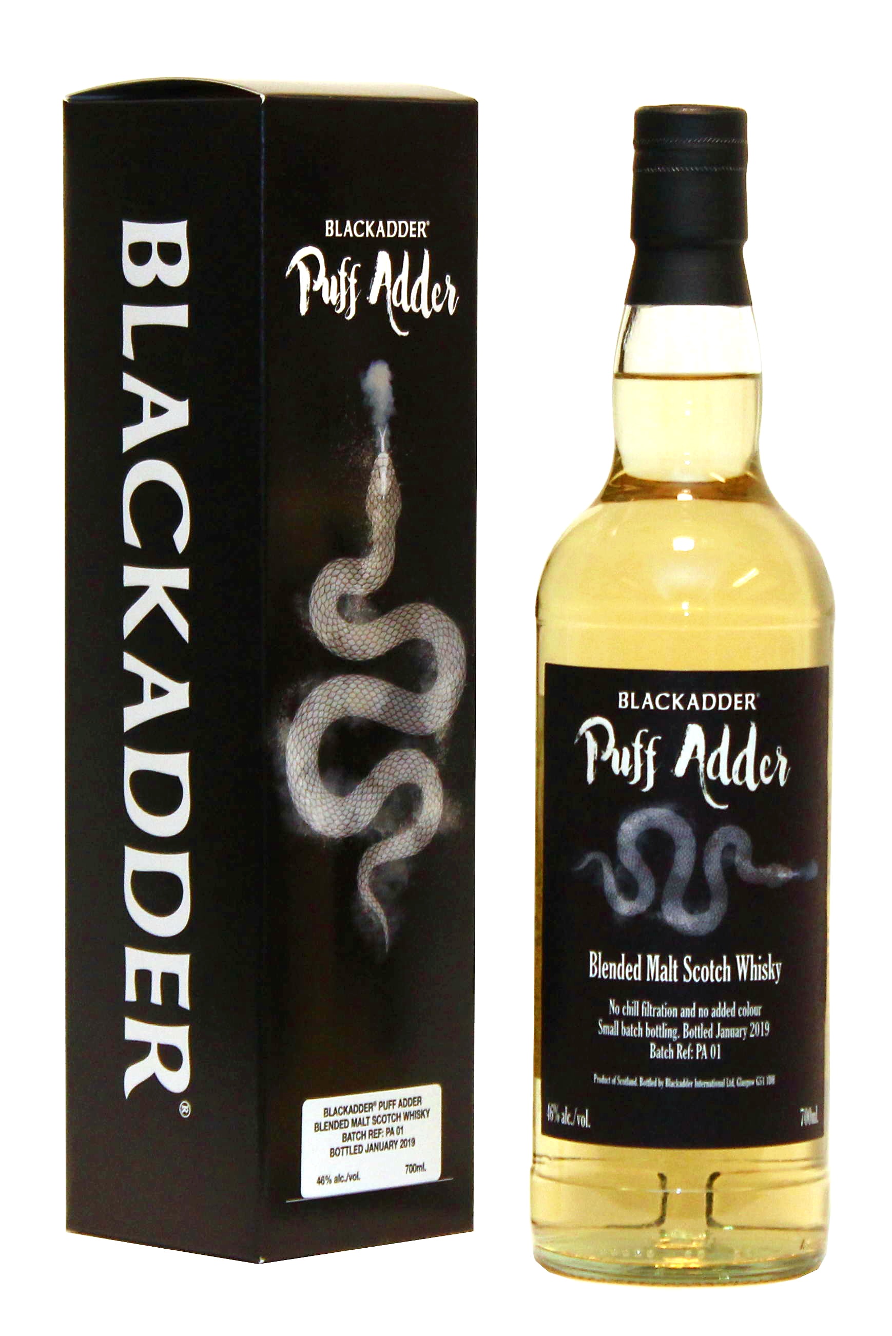 Den här whiskyn som jag nu har i glaset bär på namnet Blackadder Puff Adder Blended Malt, har en styrka på 46% och är nr 7 i ordningen ur semesterlådan från Värmdö Whisky.