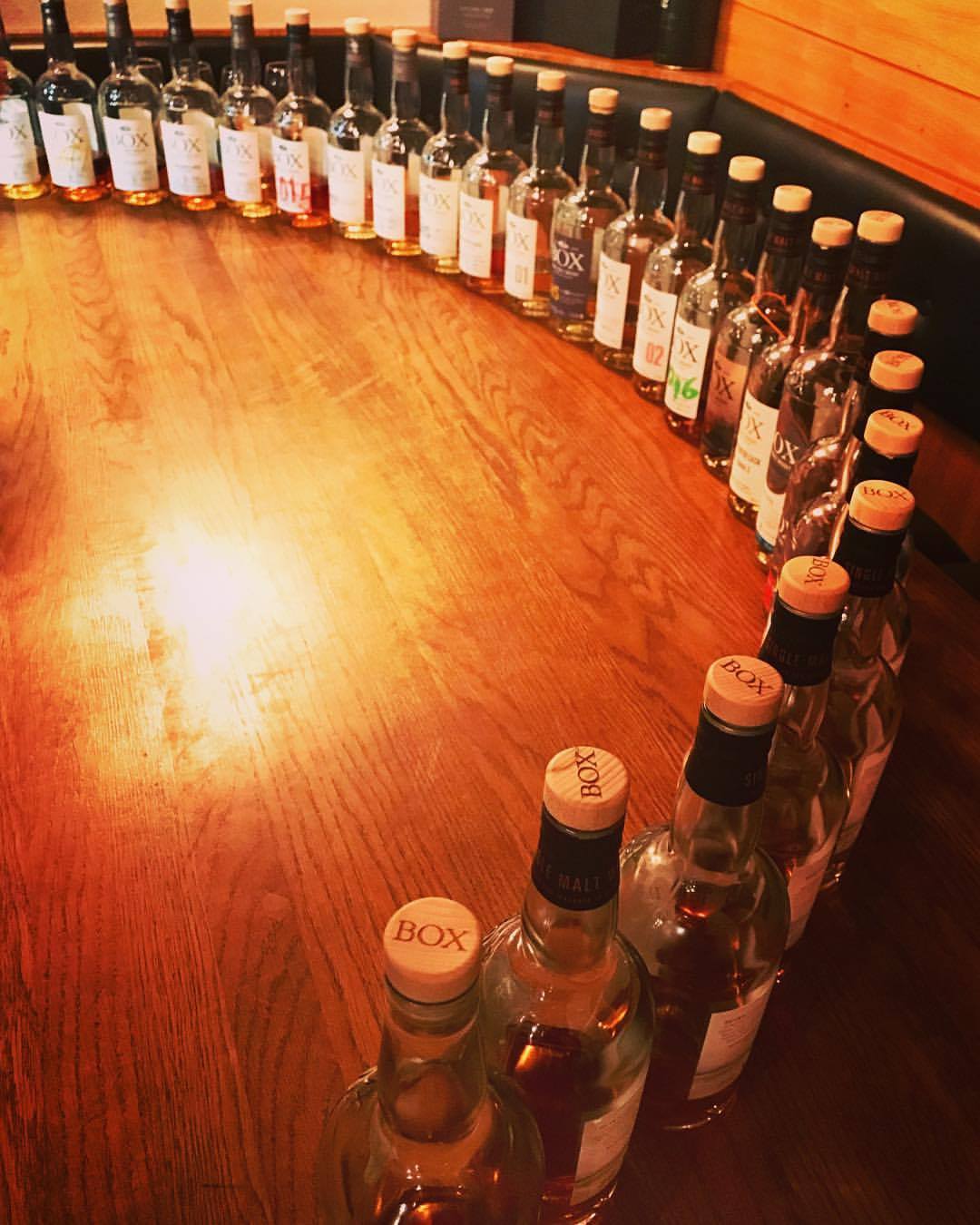 | 26 drams med BOX whisky och små tapas på Ardbeg Embassy. |
