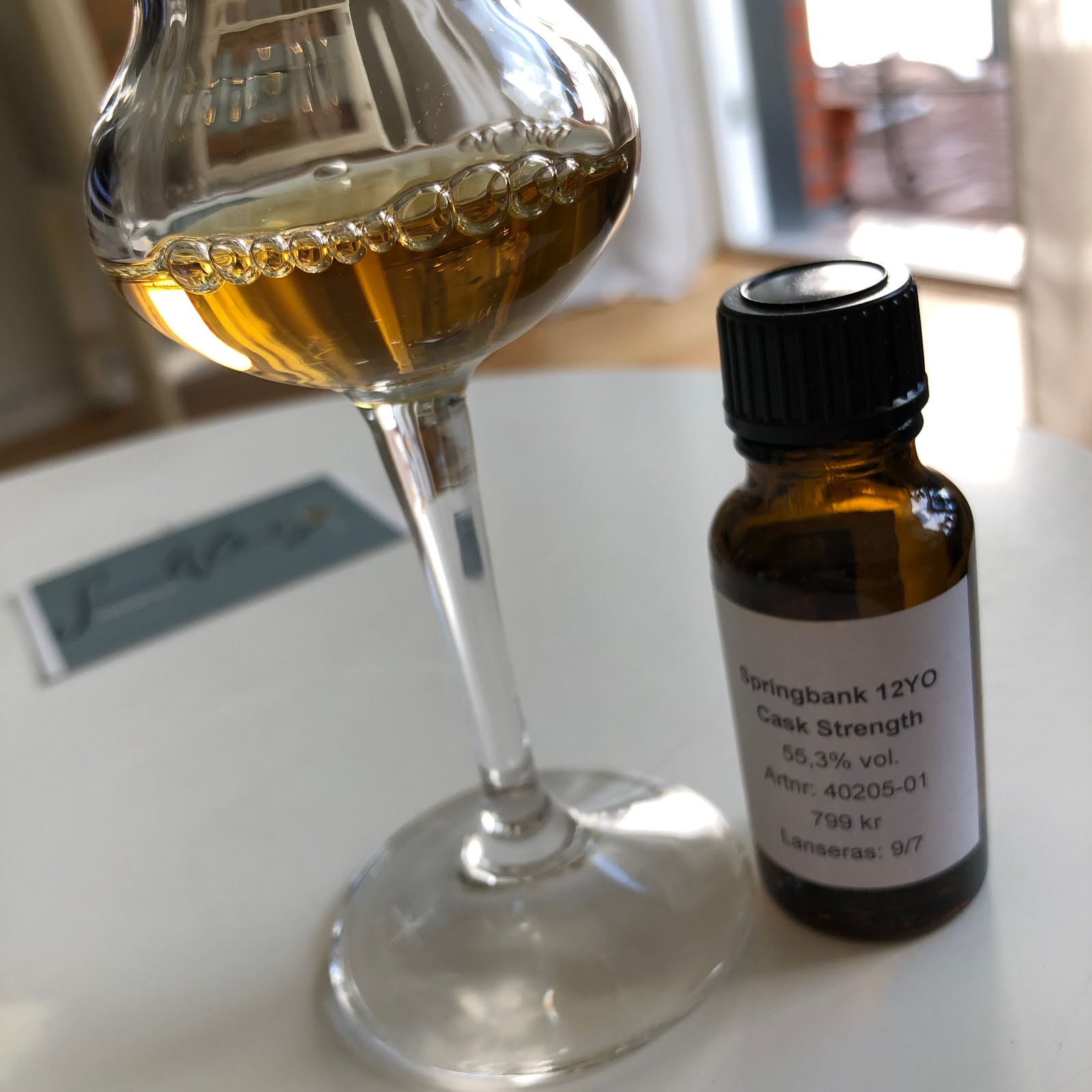 Springbank 12yo CS (12-15ppm) has for the 2020 edition been matured to 65% in bourbon casks and to 35% in sherry casks. The ABV is 55,3% and Sweden receives 540 bottles (number of bottles produced in total not stated).