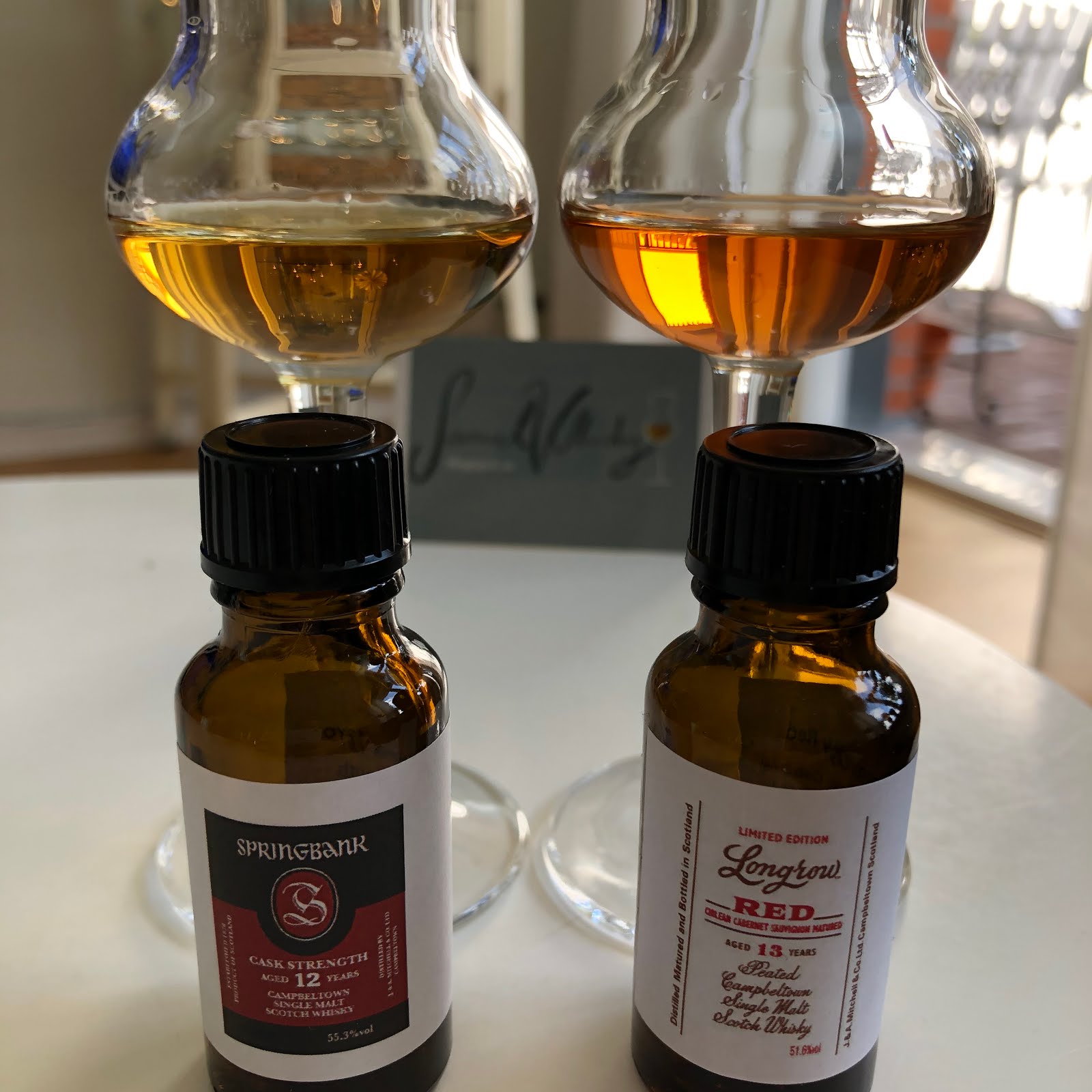 The samples I chose are the latest editions of Springbank 12 yo Cask Strength and Longrow Red (both bottled 2020). The reason for choosing them was that I actually did a versus/comparison/head to head of them two years ago (click